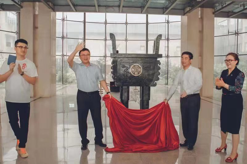 蔡立东院长与周春国书记共同为玉鼎揭幕。这尊鼎象征着吉大快猫