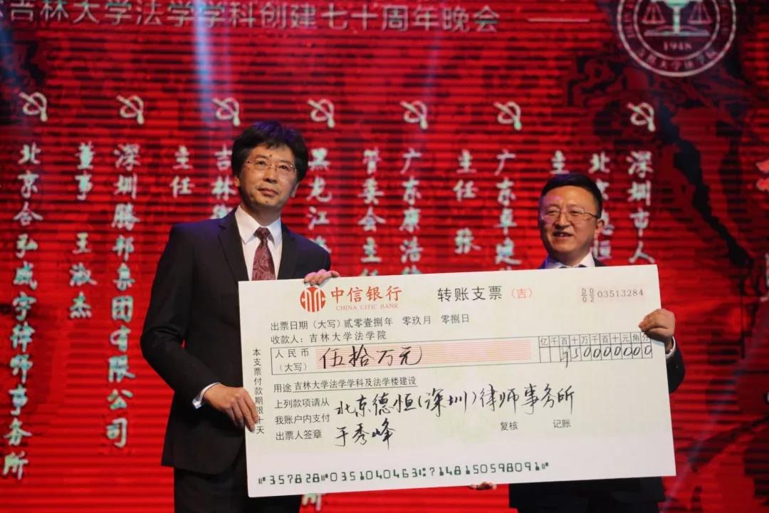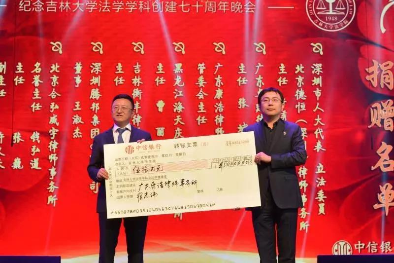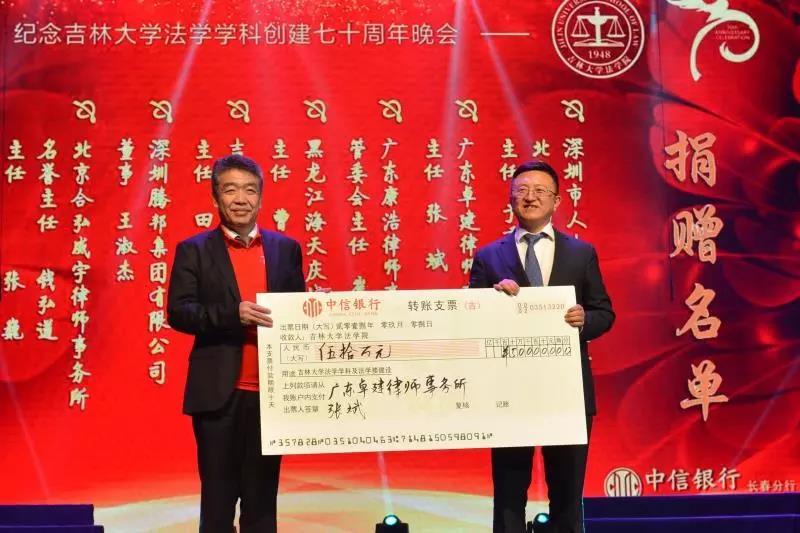 70年来,吉大法学培养了一批又一批优秀的法律人才,他们走出母校,在社会的大熔炉中历练、成长。在此70周年庆典之际,他们又回到了母校,为学院的发展建设献出自己的力量:深圳市人大代表、立法委员、北京德恒(深圳)律师事务所主任:于秀峰个人捐赠50万元;广东卓建律师事务所捐赠50万元;广东康浩律师事务所捐赠50万元;黑龙江海天庆城律师事务所捐赠50万元;吉林衡丰律师事务所捐赠50万元;深圳腾邦集团有限公司捐赠100万元;北京合弘威宇律师事务所捐赠100万元;北京金杜律师事务所捐赠800万元。感谢各位校友对吉大快猫