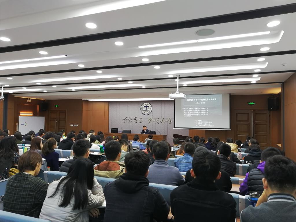 师生150余人参加。王军明副教授介绍,作为国内顶级的刑辩律师,钱列阳先生曾承办过刘晓庆涉税案、徐翔操纵证券市场案、厦门远华公司走私案、原铁道部部长刘志军涉嫌受贿、滥用职权案等多起国内影响较大的刑事案件,在我国刑事辩护界具有重要地位。