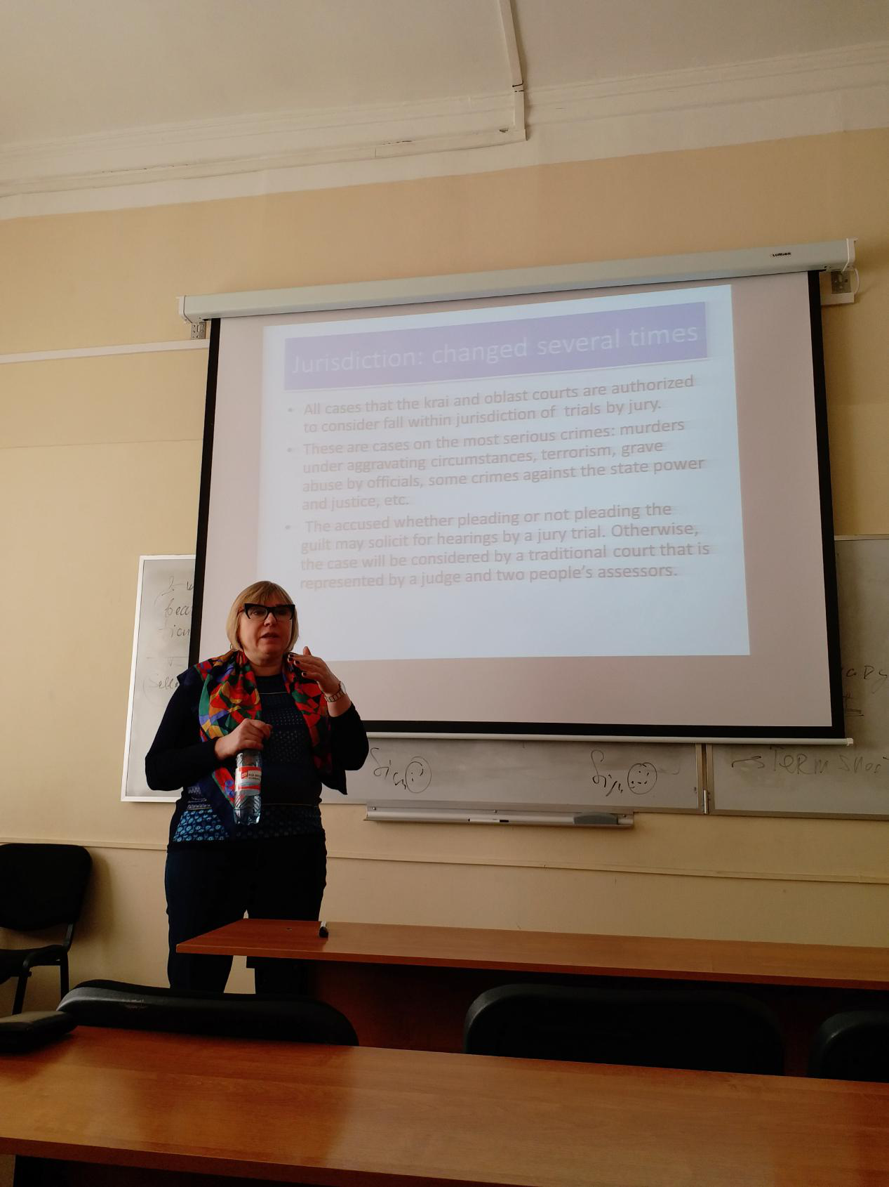 师生在俄罗斯宪法课程中,对俄罗斯宪法的历史变革、文本规范、文化基础、司法实践、政法关系进行了学习和了解,特别就十九大报告中提出的“推进合宪性审查”与俄罗斯宪法审查制度的内容与俄方授课教师进行了探讨。在俄罗斯商法课程中,赴俄访学学生学习了俄罗斯商法基础理论和商事基本规范,对俄罗斯商法理论有了一定了解。在研究方法上,赴俄访学师生在授课中,注意到了俄罗斯法学在法教义学研究方法上的高度发展,俄罗斯法学教学有着强烈的规范文本意识,这与我国法学教育发展的方向竞合,获得较大的收获和启发。同时,在法学教育上,还就俄罗斯法学教育课程体系安排与设计等问题与俄方学院进行探讨与交流。
