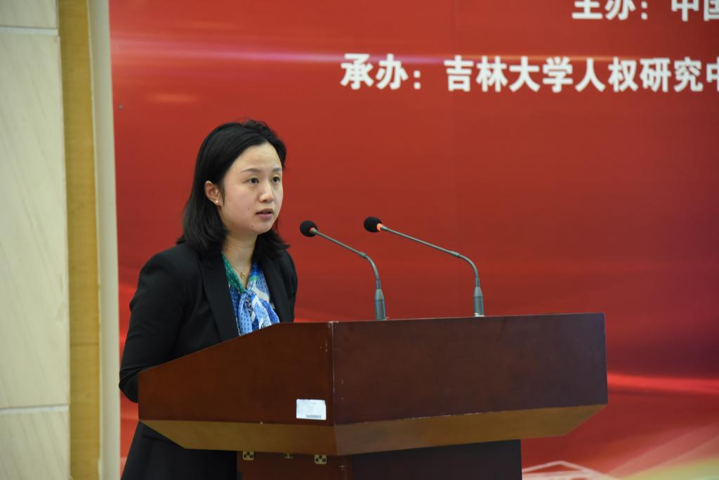 外交部国际司一秘李怡作“深入参与全球人权治理,推动构建人类命运共同体”的发言。李怡介绍了六个有关国际人权交流合作的方面:第一,拓宽了人权保障的路径。第二,为全球人权治理贡献了中国智慧。第三,坚决捍卫国家利益和形象。第四,认真履行国际人权义务。第五,广泛开展人权交流合作。第六,大力提升人权话语权。