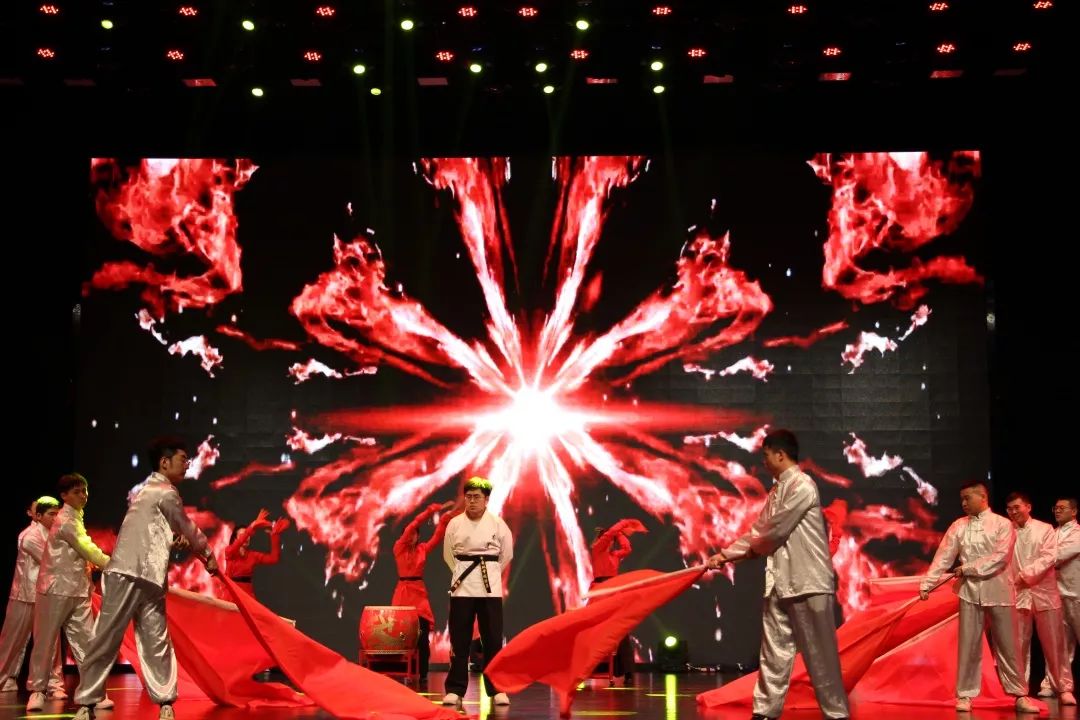 晚会进行到第二部分,双节棍《龙的传人》古风与现代表演的完美结合,慷慨激昂的声声擂鼓在法律硕士李婧、秦思越、苏丽洋、魏潇雪等同学的演绎下彰显出巾帼不让须眉的英姿飒爽,炫酷有力的双节棍伴随着漫卷天幕的烈烈红旗更是凸显华夏儿女的自强不息和铮铮傲骨!