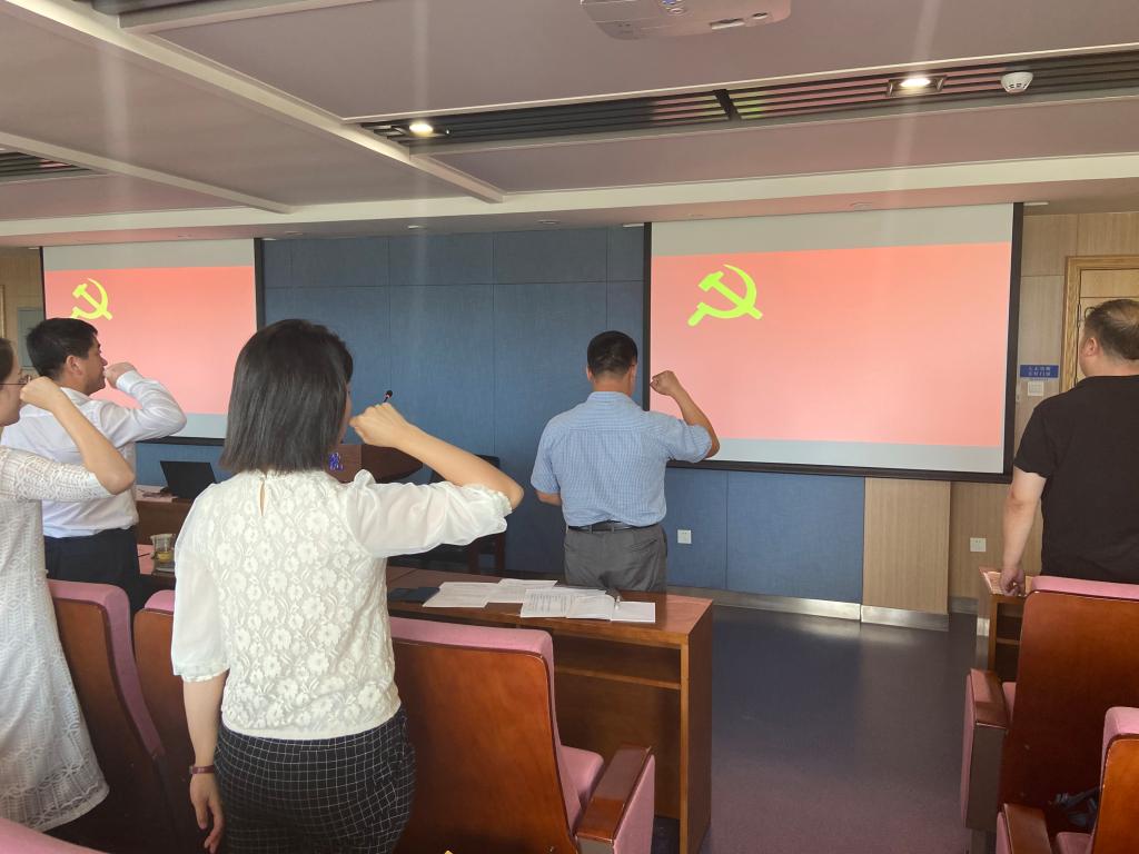 学院党委书记周春国号召各位党员要深入贯彻落实习近平总书记重要指示,深入学习践行黄大年精神、传承弘扬黄大年精神,在实际工作和日常生活中,要以“让教师满意、让学生满意”作为检验一切行政工作成效的标准。最后,为庆祝建党99周年和喜迎“七一”,与会人员重温了入党誓词,再一次感受“誓词”带给党员的厚重历史冲击和强烈责任担当。