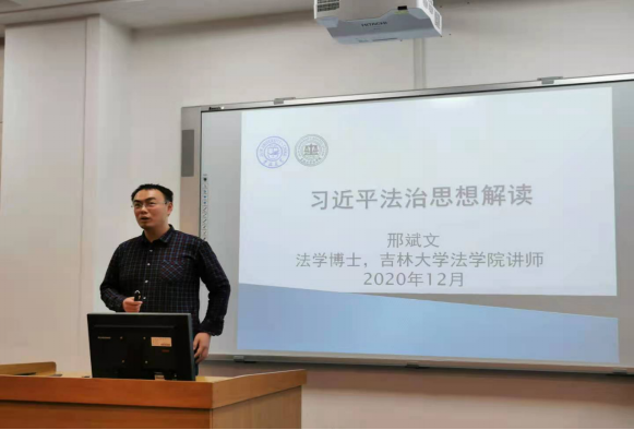 法制史与宪法行政法学教研部联合党支部书记邢斌文讲师应邀出席活动并做专题授课,本次活动由2020级法学硕士四班党支部书记张婷婷同学主持。
