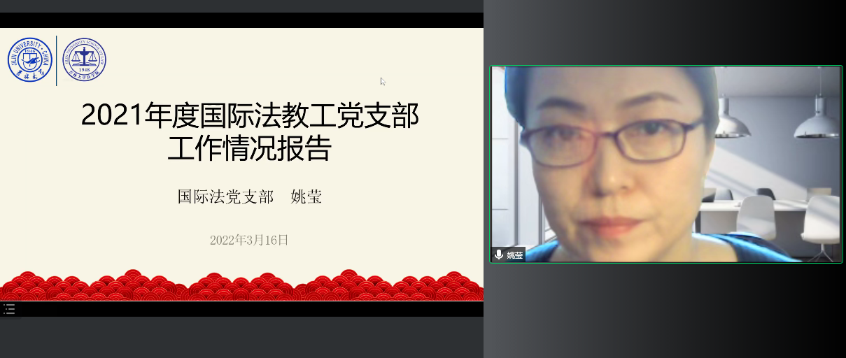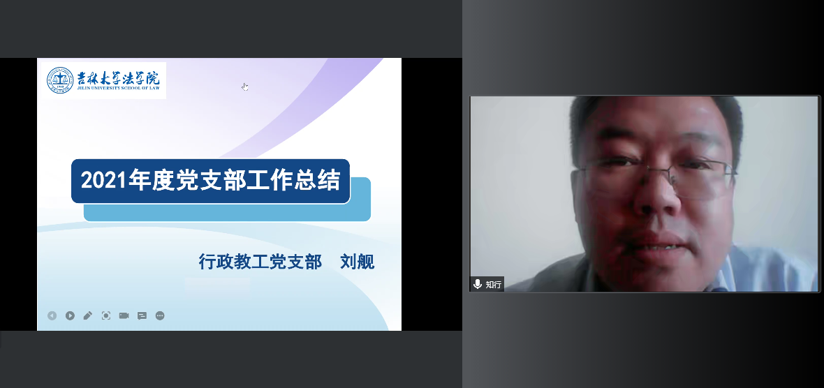 党委书记周春国在总结点评中对各教工和学生党支部在2021年度党建工作中取得的成绩给予充分肯定,并对进一步做好基层党支部工作提出四点意见:首先,党支部工作的根本是实事求是,不能搞形式主义。要通过党支部“三会一课”的载体将之与教学科研、人才培养、学生成长等情况结合起来,与新时代e支部的建设结合起来,只有让每一位老师和同学在参加支部活动中有所收获才能增强党支部建设的生命力。第二,党支部工作的目标是提升党员的先进性。党支部的工作是为了不断巩固和扩大党执政的群众基础,因此工作中一定要抓住工作重点,比如当下全民抗疫,教师的工作重点应该是做好线上教学工作,关注关心学生生活;学生的工作重点应该是积极参与志愿服务,专注于提升学业成绩,严格遵守学校防疫规定。第三,党支部工作的水平取决于党支部书记的投入和付出。党支部书记是党最基层、最重要的先锋战士,如果党支部书记的政治站位不高,规划能力不足,付出程度不够,那么党员的工作状态无法保证,再好的规划与蓝图都难以落实,每一个党支部书记都应该是一面旗帜,要极其重视自己的岗位职责。第四,党支部工作的创新在于要抓住机遇。在当下抗疫的大背景中,党支部工作要能够与抗疫结合在一起,为抗疫献策,为抗疫助力,抓住抗疫,就抓住了凝聚所有党员的机会。周春国强调,学院每一位老师和每一位同学都是打赢吉大抗疫保卫战的中坚力量,感谢大家在抗疫工作中的付出,叮嘱大家在做好自我防护的同时肩负起党员干部的责任,共同努力为吉大法学今后的抗疫工作贡献力量。