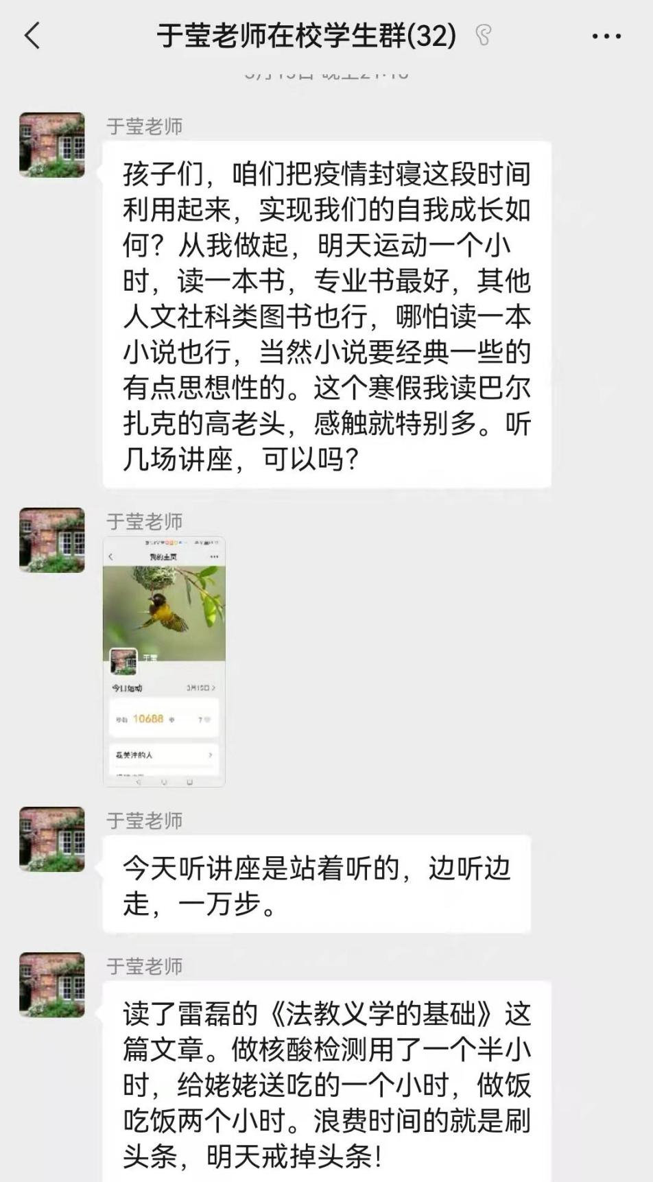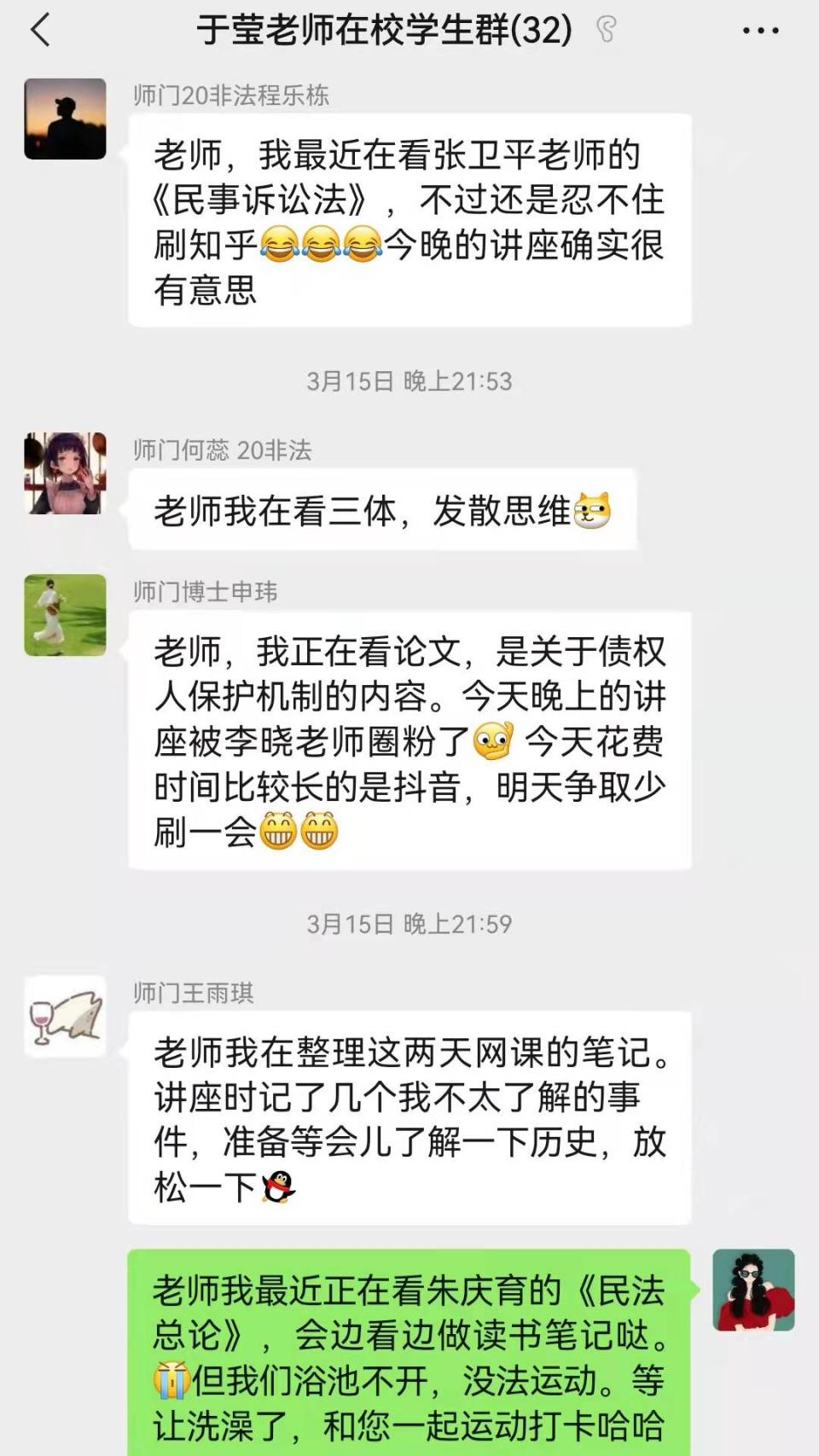 共克时艰 法苑芳华|于莹教授组织学生开展自律生活与学习活动