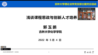 党委的工作部署,2022年5月4日晚6时,理论法学党支部通过腾讯会议线上召开“永远跟党走 建功新征程”主题党日活动。党支部全体党员参加了主题党日活动,党支部还邀请化学学院副院长郭玉鹏教授和快猫