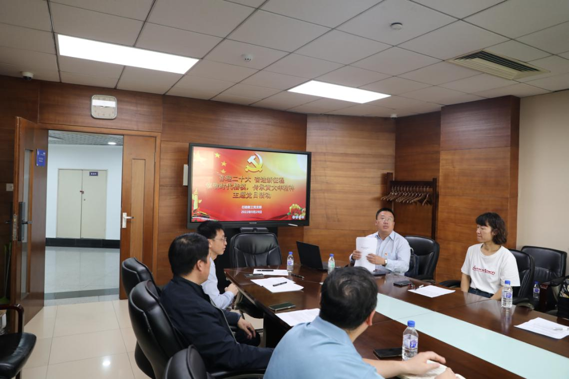 行政教工党支部在东荣大厦716会议室举行“喜迎二十大 奋进新征程:致敬时代楷模,传承黄大年精神”主题党日活动,学院行政副院长吕欣以及支部全体党员参加了活动。活动由行政教工党支部书记刘舰主持。