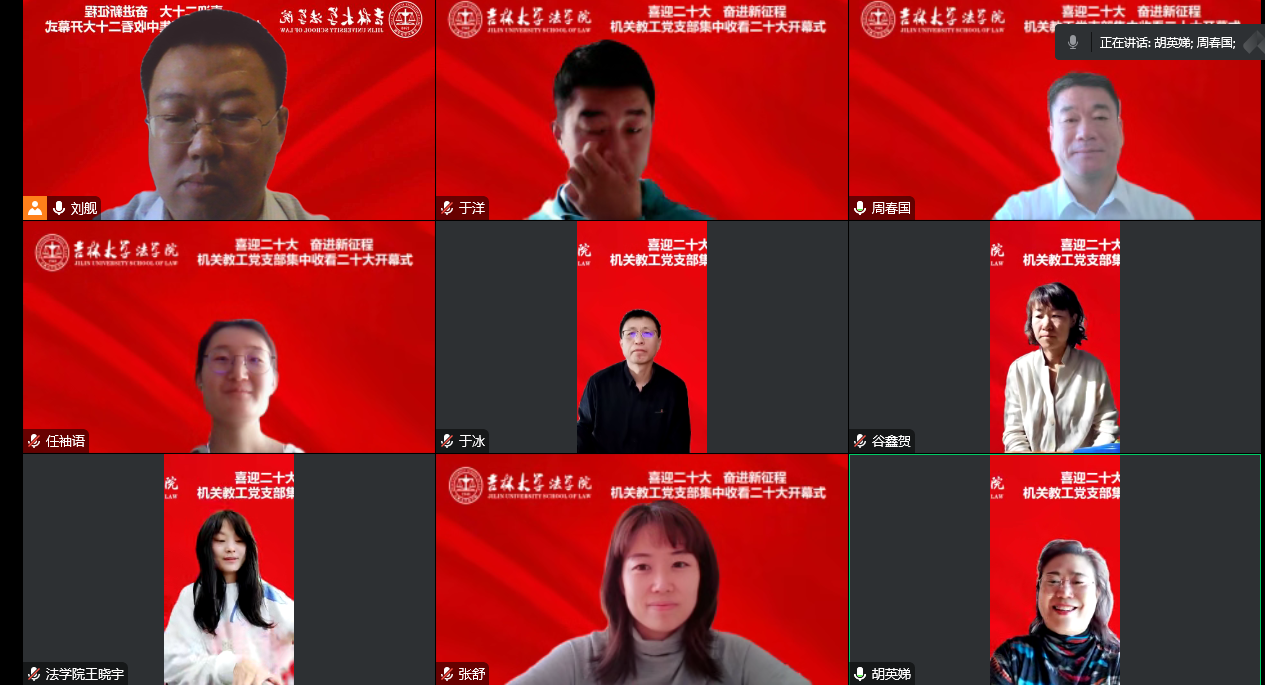 党的二十大开幕会结束后,机关教工党支部召开主题党日活动,支部党员围绕开幕会和二十大报告,分享了各自的学习体会和感悟。林媛媛认为,收听收看了党的二十大开幕会,非常有自豪感!在国家快速发展的新时代的中国,作为一名中国人的自豪感油然而生;学院在培养法治人才工作中,也将要更多关注思政工作,努力发掘新的拓展领域和创新工作举措,为学生的培养教育打下更加坚实的基础。张俊峰指出,党的二十大报告,是在习近平新时代中国特色社会主义思想指引下,对过去十年工作的总结,是党和国家未来工作的纲领性文献,聆听后备受鼓舞。吕欣强调,党的二十大报告,为防疫工作进一步指明了方向;学院的各项工作,要继续秉持以学生为中心、以教师为中心的理念,行政教辅团队要竭尽所能为师生服务,切实解决师生的急难愁盼问题。