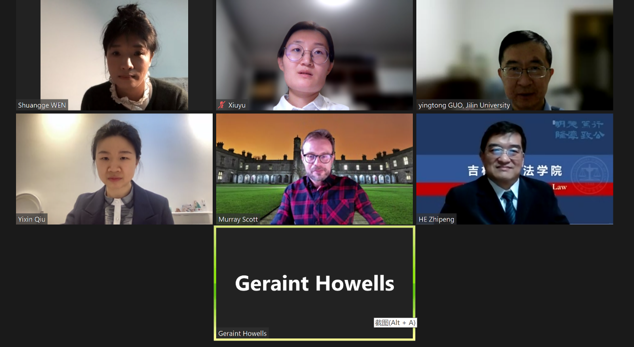 院长Geraint Howells教授、副院长Murray Scott博士以及负责国际项目的Qiu Yixin女士在线开展合作交流会议。