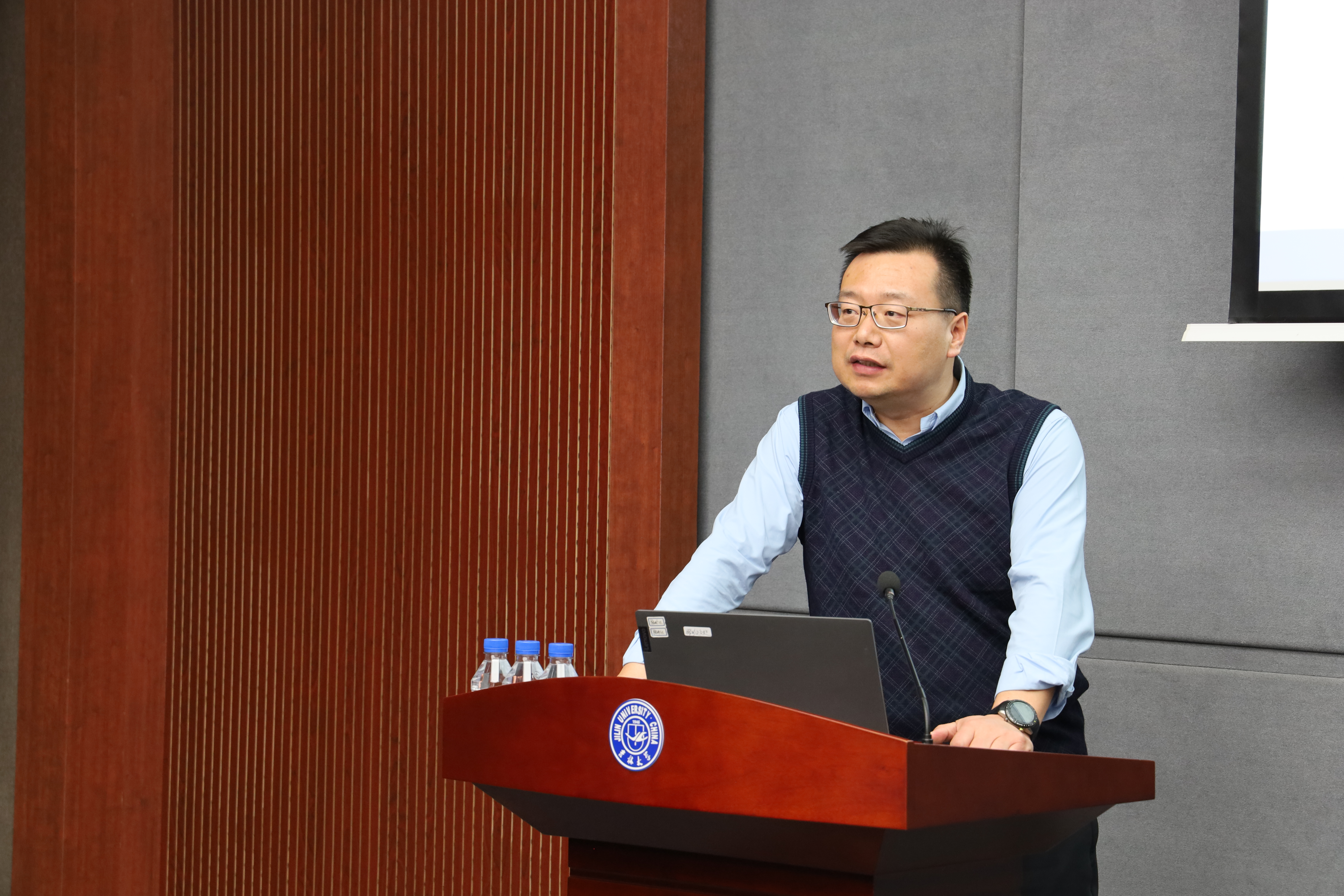 副院长温双阁以《理势并举 智才互通——国际合作新篇章展望》为题,在回顾拓展国际合作伙伴、国际师资与经费方面所取得成绩的同时,剖析当前外事工作遭遇困境与挑战,提出“察大势、广交友、固联系、促人和”的发展思路,对平台建设、东北亚区域合作和国际学生培养重点方面工作进行展望,并提出详尽的保障措施。同时对学科建设工作思路加以概述。