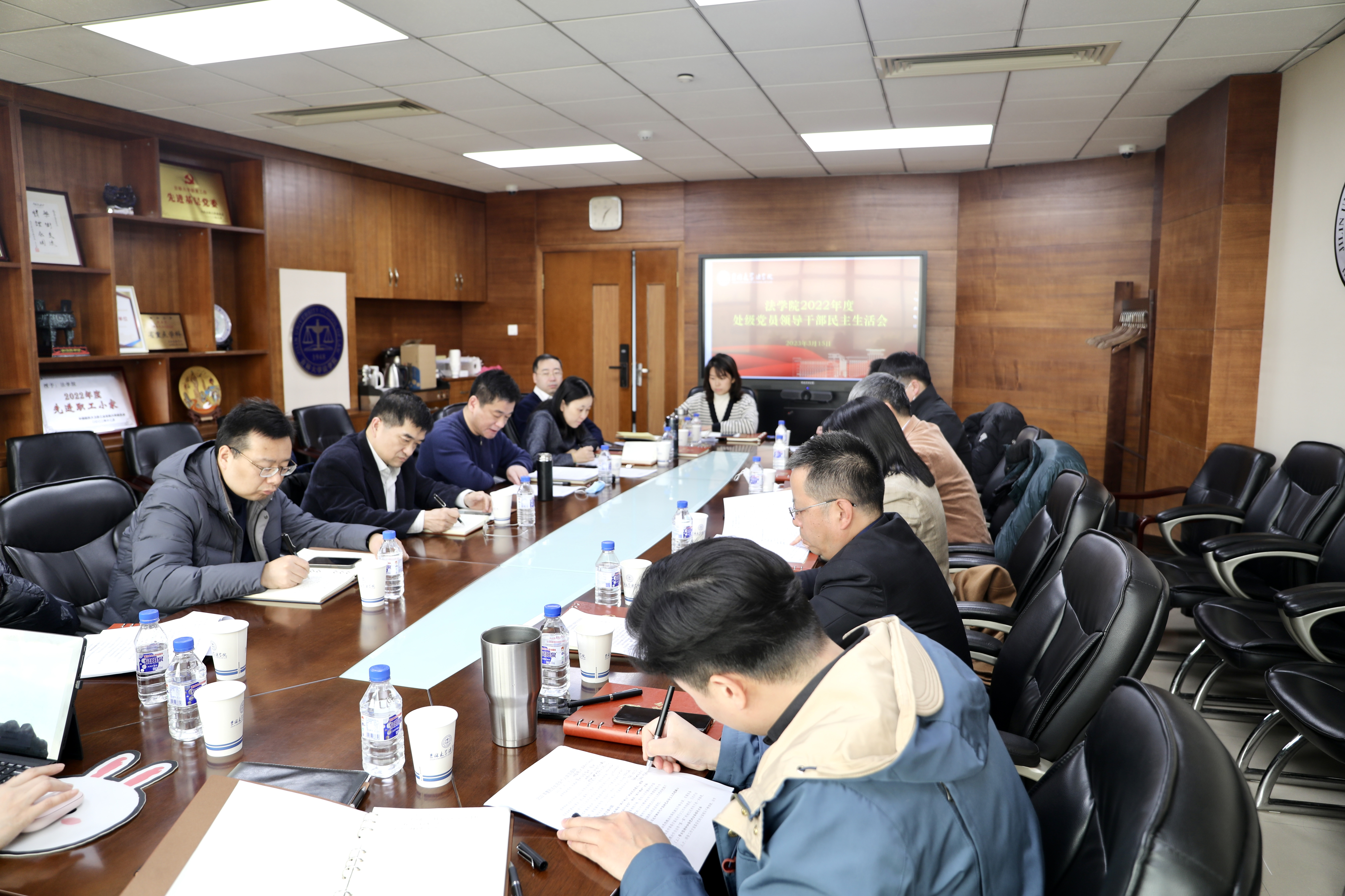本次会议的主题是全面贯彻习近平新时代中国特色社会主义思想,深刻领悟“两个确立”的决定性意义,增强“四个意识”、坚定“四个自信”、做到“两个维护”,团结带领党员干部群众以奋发有为的精神贯彻落实党的二十大作出的重大决策部署。处级党员领导干部对照党的二十大精神和党章党规党纪,把自己与学院工作职责摆进去,聚焦带头深入领悟“两个确立”的决定性意义,增强“四个意识”、坚定“四个自信”、做到“两个维护”;带头用习近平新时代中国特色社会主义思想凝心铸魂;带头坚持和加强党的全面领导;带头坚持以人民为中心的发展思想,推动改革发展稳定;带头发扬斗争精神,防范化解风险挑战;带头落实全面从严治党政治责任六个方面进行对照检查,问题剖析,提出改进措施。