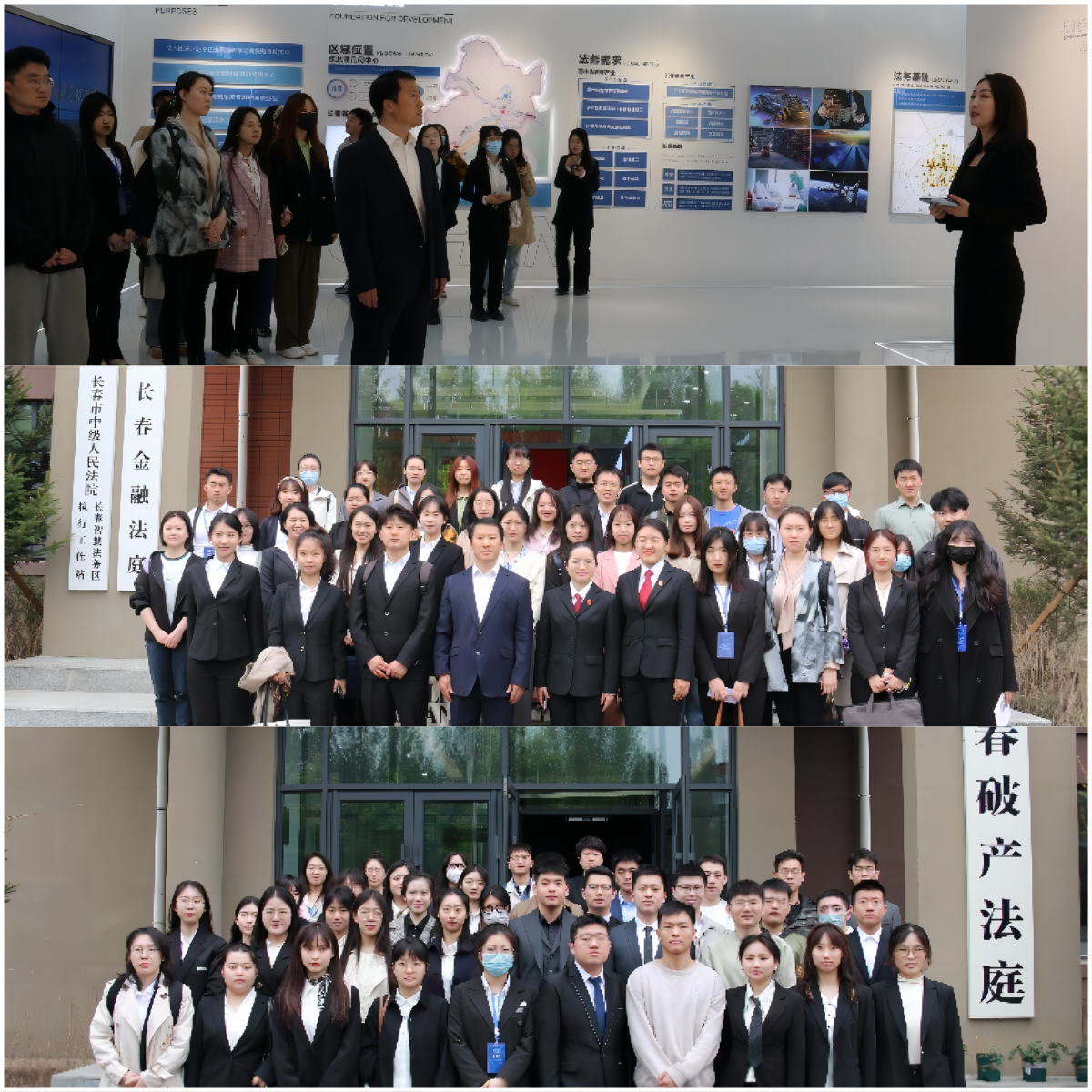 决赛于5月17日在长春智慧法务区报告厅举行。上午,王立国老师与86名研究生代表先后到长春智慧法务区金融法庭、破产法庭,长春智慧法务区展示中心,省司法厅、长春市司法局公共法律服务联合运行管理中心及君泽君律师事务所参观,了解了法务区的建设背景、资源基础与发展现状。