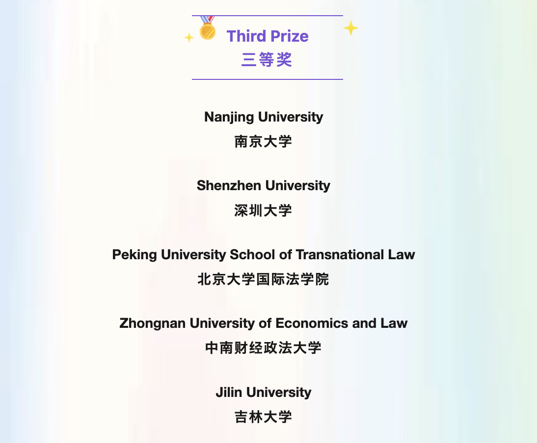 代表队表现优异,赛出水平,四场赛事均获得了国内外仲裁员的表扬与肯定,最终荣获赛事三等奖,2021级本科生曹瑞获团队突出贡献奖,充分体现了快猫