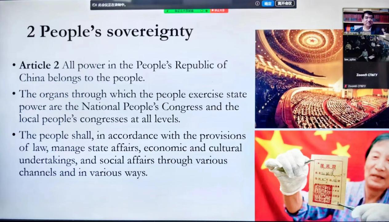 的又一有益交流。继讲授中国人权学等主题后,何志鹏教授从法治前沿出发,再次与圣彼得堡国立大学师生共同学习我国的政治体制,为国外师生了解中国制度、研究中国法治提供了参考,助力中国特色社会主义法治思想的传播。