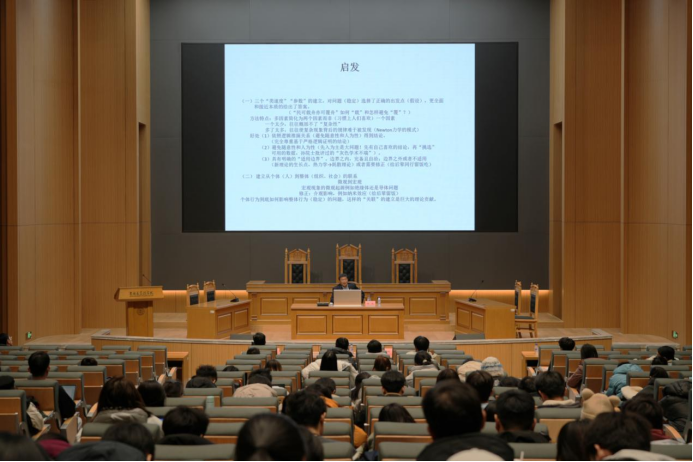 最后,王充教授对讲座内容进行了总结。王充教授强调了自然科学研究方法对社会科学的重要启发意义,并通过比较自然科学与法学的不同,建议同学们突破“信息茧房”,广泛涉猎专业之外的知识,用以启发对于所学专业的思考。在热烈的掌声中,本次讲座圆满结束。