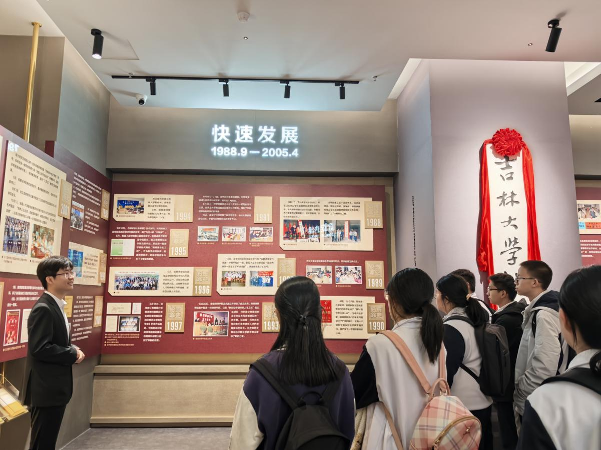 院史馆。“从1948年至今,七十余载时光飞逝,吉大法学始终深耕中国法治,以明德笃行为训,以隆法致公为志,中流击水、千帆共发,为实现公平正义、良法善治而奋斗……”在院史馆讲解员张博宇同学的讲解中,同学们了解吉大法学七十余年的光辉院史,一代代快猫