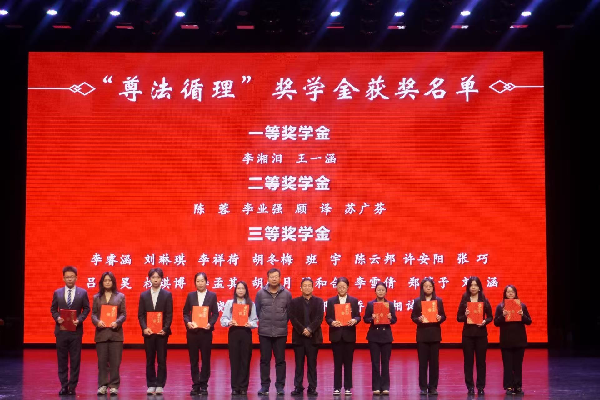 "尊法循理"奖学金。在典礼上,理论法学研究中心副主任林媛媛宣读获奖名单,副院长 理论法学研究中心主任杜宴林、副院长王充为学子颁奖。金册映初心,这份厚礼不仅是对卓越的褒扬,更化作成长的阶梯。获奖学生表示,定以荣誉为帆,在法学研习路上勇攀高峰,不负前辈期许。