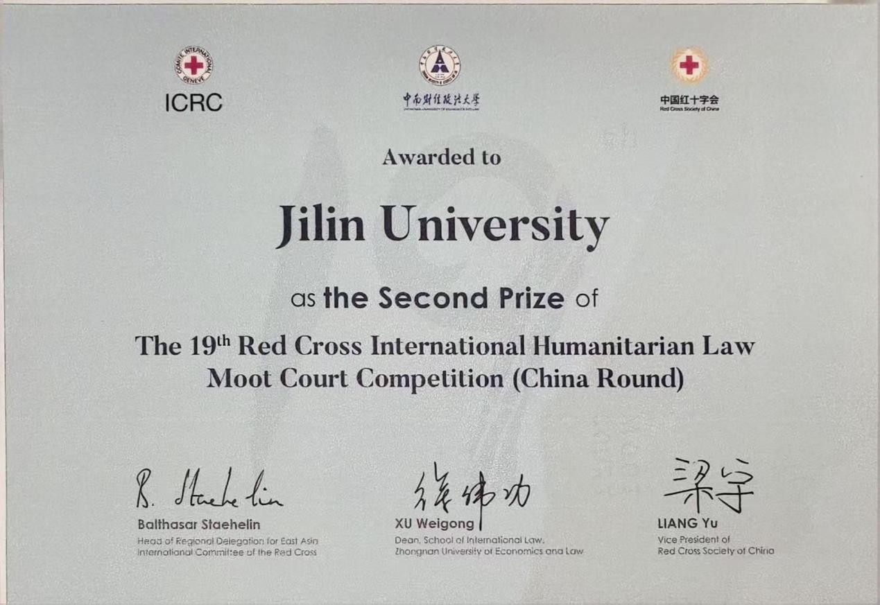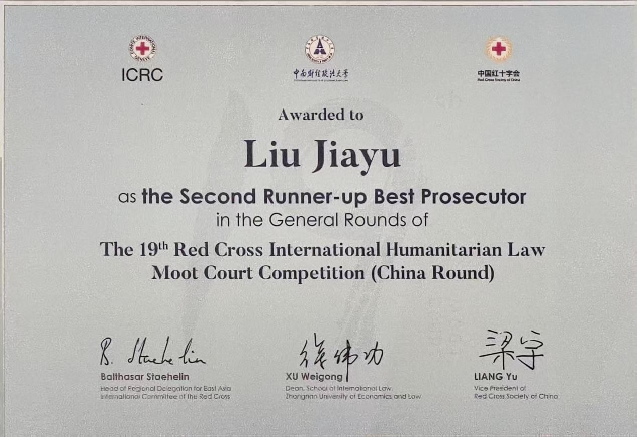 代表队全力以赴,凭借扎实的专业基础和出色的庭辩发挥,荣获全国二等奖、最佳辩方诉状第一名,刘嘉宇同学荣获最佳辩手奖。
