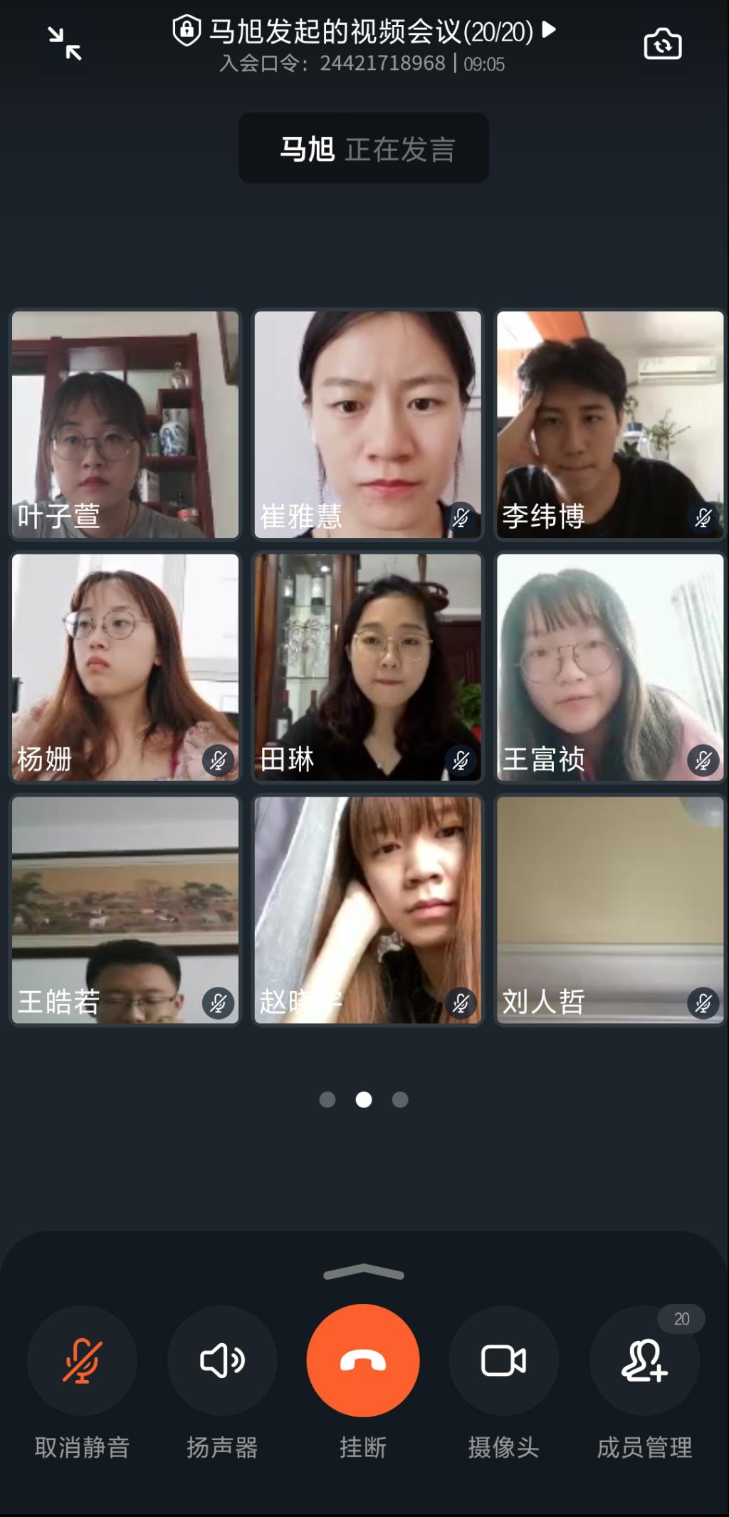 学生办公室主任、2016级辅导员马旭老师通过钉钉app主持召开线上年级大会和班委会。2016级全体学生参与年级大会,各班班长、团支书参与班委会。
