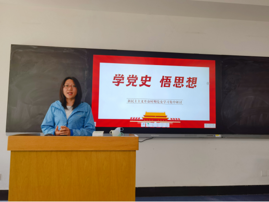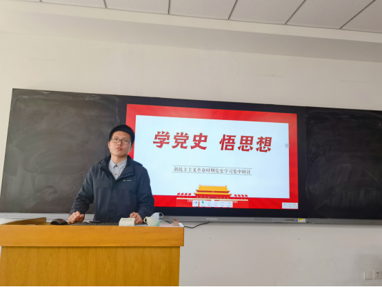 最后,到会的三位党员同志及一位积极分子主动向大家分享自己的学习心得。金培汉同志从历史事实出发,和大家共同探讨了新时代党员的历史使命,并表示一定要不忘初心,砥砺前行。王艳华同志结合自身经验,表示在今后的学习工作中,我们也要像中国共产党的诞生和发展过程一样,在曲折中前进,坚持用事实说话,用结果证明。路鹏宇同志则强调作为新时代青年知识分子,我们一定要坚持正确的政治立场,并坚持以人为本的思想观念。而宋如梦同志则向大家补充了新民主主义革命胜利的三大法宝的具体内核,并表示作为新时代党员应以敬畏之心认真学习党的历史,不忘初心,牢记使命。