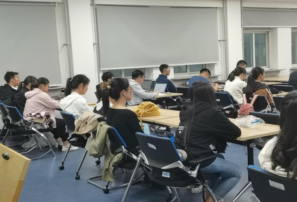 本科生2020级党支部书记徐俊玉以及部分本科生党员、预备党员、入党积极分子代表在经信教学楼203室集中观看学习,其余同学通过线上形式观看。