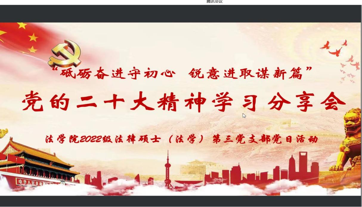 2022级法律硕士(法学)第三党支部于2022年11月22日开展党的二十大精神学习分享会。本次会议由党支部书记佟秋颐主持,全体党员和入党申请人参加本次会议。