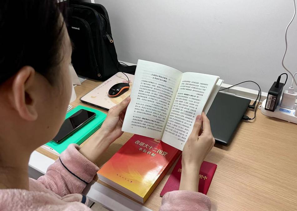在阅读二十大相关文本资料的过程中,支部的党员同志纷纷表示,要以此次二十大图书阅读活动为契机,认真学习领会党的二十大精神,真正把学习贯彻党的二十大精神落实在行动上、坚持理论联系实际,把二十大精神落实到学习与工作中,激发学生党员“爱读书、读好书、善读书”的阅读热情,做到知行合一,学以致用,不断用党的创新理论武装头脑,指导实践。