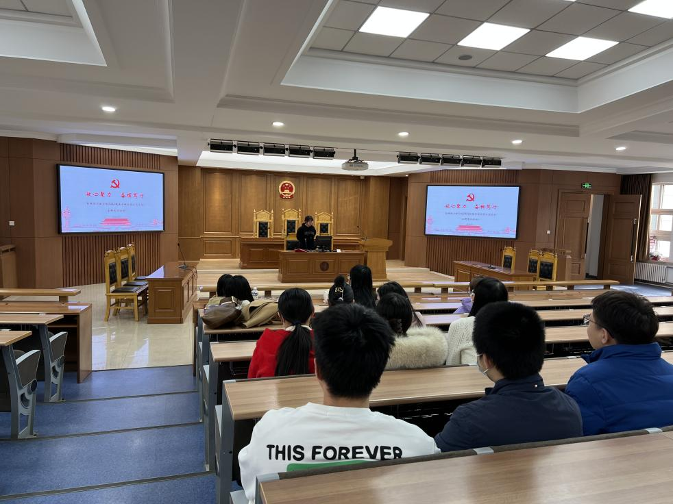 聚焦两会谋新篇,踔厉奋发向未来。支部副书记汤俊蕊讲授学习两会精神专题微党课。两会期间,支部全体党员第一时间关注会议动态,观看两会直播,热议政府工作报告、“两高”工作报告、《立法法》的修改等内容。作为新时代的法律人,读懂两会就是要读懂法治中国的脚步与温度。支部书记王珂馨在点评的过程中鼓励全体党员以高度的政治责任感与强烈的历史使命感,勇于担当新征程之重任。