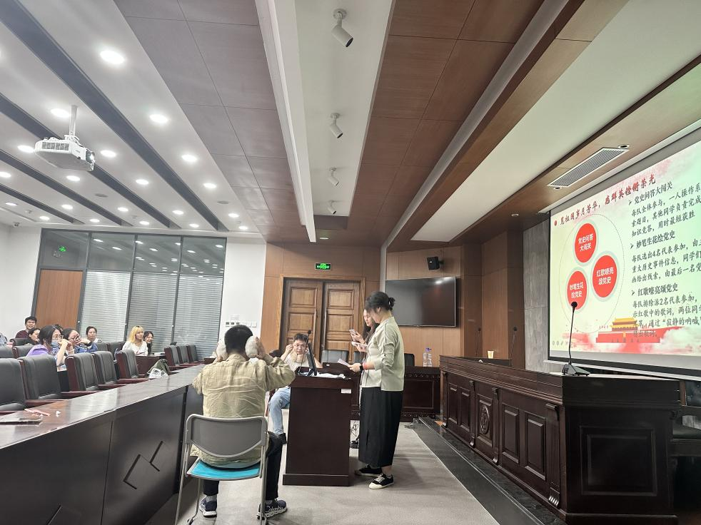 览祖国岁月芳华,感群英铿锵荣光。创新开展党史知识竞赛,将“党味”与“趣味”紧密结合,提高党组织生活的感染力、吸引力。在“党史问答大闯关”环节,同学们走进“党史知识小屋”搜寻线索并进行抢答,紧张激烈的氛围中增进了对党的百年历史中的重要事件与思想的了解;在“红歌颂党史”环节,充分考验团队配合和默契,以耳熟能详的红歌为引,感受文艺作品中体现的中国从站起来富起来到强起来的伟大征程。两轮激烈对决后,决赛队伍进入紧张的抢答加时赛,大家踊跃答题,展开充分展现了支部党员们扎实的党史知识基础和敢于争先的精神风貌。