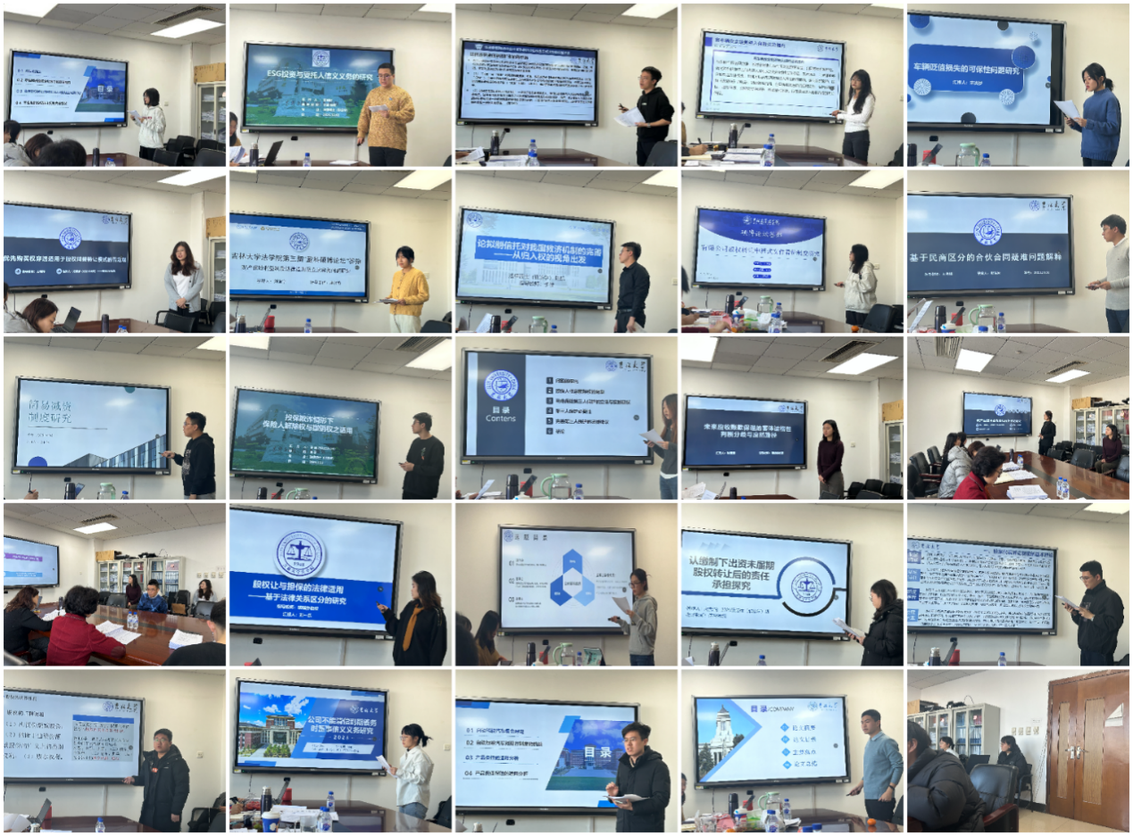 第二分论坛的流程包括论文汇报、论文评议以及综合评分三个环节,共有25位同学参加。在论文汇报环节,同学们从商法学基础原理、商法热难点问题以及司法实践等角度出发,结合演示文稿对所提交论文的研究意义、理论基础及论文观点等方面进行汇报,从理论到实践、从问题到答案,从文字到表达,展现出了法学生的知识学养与思维逻辑。