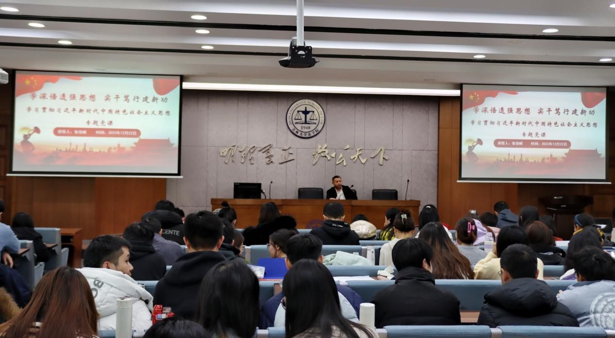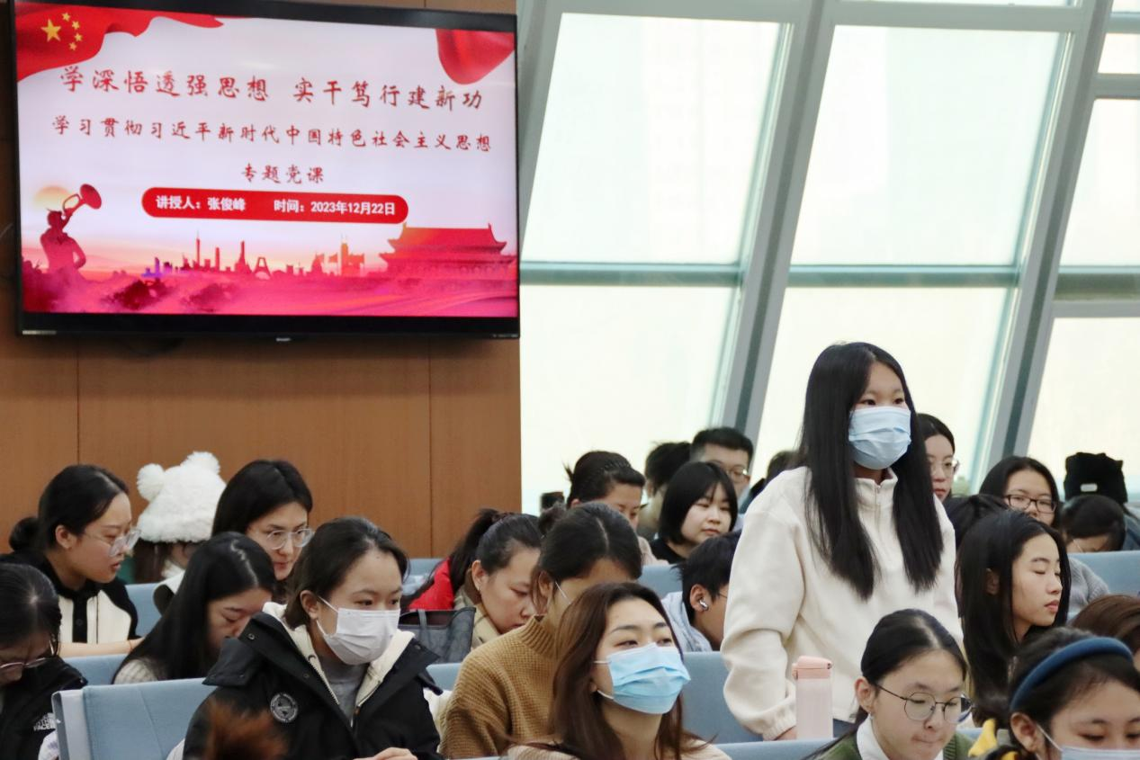 党委副书记张俊峰于2023年12月22日上午在为新加入党组织的2021级研究生预备党员讲授党课。2023级研究生入党申请人和其他年级党员代表参加党课学习。