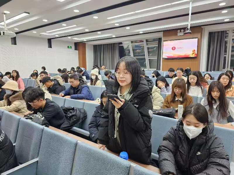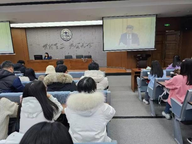 2023级法律硕士各支部于2023年12月23日联合召开“学习榜样精神,汇聚奋进力量”主题党日活动。全体党员共同收看《榜样8》专题节目,感悟榜样力量,凝聚奋进动能。本次党日由2023级法律硕士(国际涉外班)学生党支部书记张漪澜主持。
