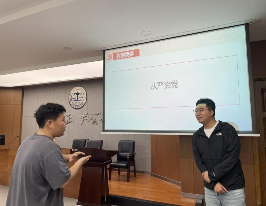 为调动全体党员学纪明纪的积极性和主动性,持续营造全员参与、人人学纪的良好学习氛围,2023级法律硕士各党支部联合开展党纪知识竞赛。“你画我猜”“飞花传令”,各赛队拼脑力、比反应,用智慧对决,用实力比拼,展现出扎实的理论知识功底。参赛研究生在在激烈竞答和思维碰撞中,促进交流互动和学习分享,激发学习热情,提高党纪学习成效。