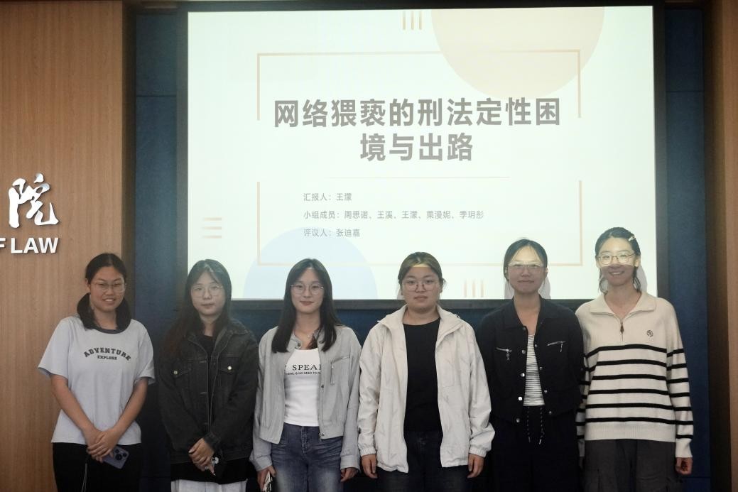 于2025年9月18日举办了第173期本科生每月法律论坛。本次论坛由2024级9班承办,刑法教研部吴亚可副教授担任指导教师。论坛中,同学们分为四个小组展开汇报,围绕“网络犯罪的刑法规制”这一核心议题进行了深入探讨,为相关法律问题的研究提供了本科生视角的思考。