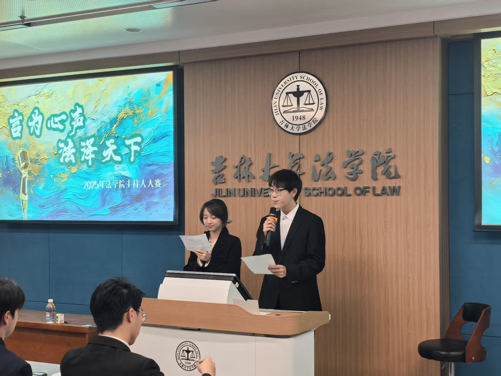 主持人大赛于2025年11月1日如期启幕。本次比赛以“言为心声,法泽天下” 为主题,致力于展现学子们的语言魅力与法治素养,丰富校园文化生活、推进美育实践。经过前宣传招募,共有16名同学踊跃报名,踏上逐梦舞台。参与本次比赛的评委分别由2023年和2024年快猫