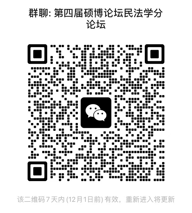 民法学方向博士研究生、法学硕士生,以及由民法学方向导师指导的法律硕士生。请各位同学及时扫码入群(入群后请在“我在本群的昵称”中写明“博士/学硕/法本法硕/非法本法硕+姓名+学号”,如:博士+张三+学号)。