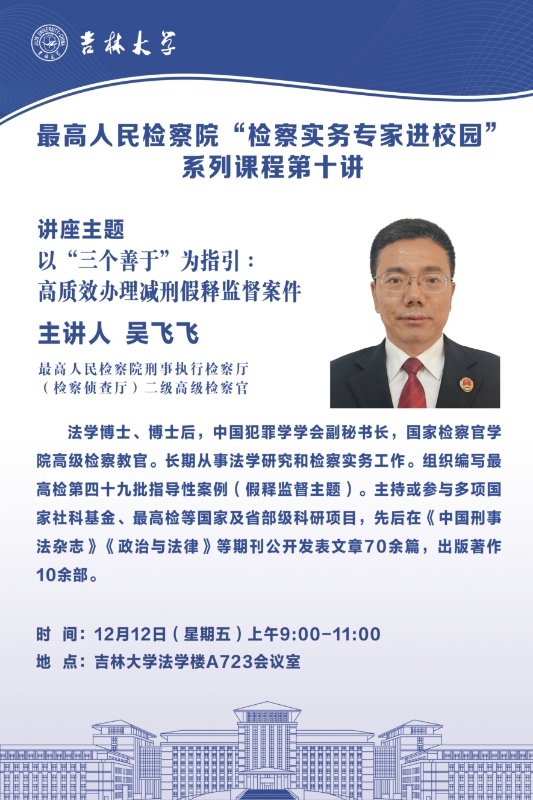 上一篇:最高人民检察院“检察实务专家进校园”第十期开讲——以“三个善于”为指引:高质效办理减刑假释监督案件 下一篇:关于举办“执行异议之诉解释的司法适用”主题讲座的通知