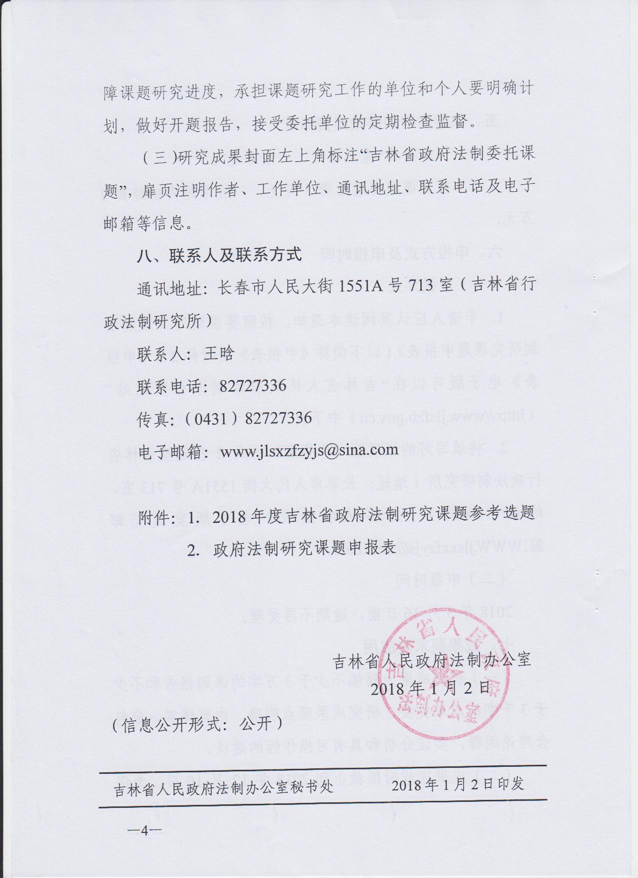 吉林省人民政府法制办公室给快猫 发来函件,关于申报2018年度政府法制研究课题的通知,请有意申报的老师按照 网址 //www.jlsfzb.gov.cn/lawInfo/tzgg/549169.jhtml 的相关要求提交材料到指定邮箱,并请抄送到学院科研邮箱 [email protected] 备案。