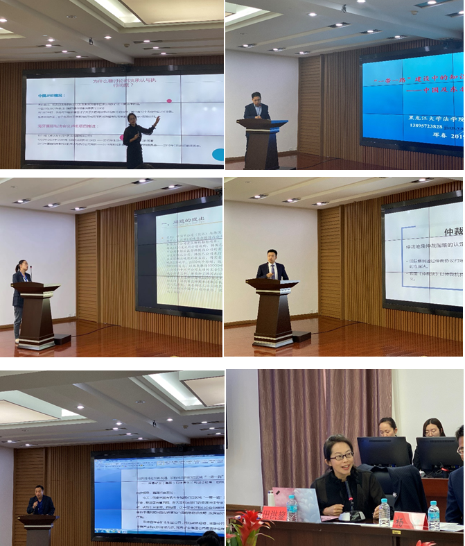 党委书记徐炳煊,中国国际贸易促进委员会吉林省商事法律服务中心副处长于超参加与谈。作为首位发言人,李广军庭长以两起国际商标纠纷的实际案例引入发言以说明我国企业在国际上存在很多被抢注商标的现象,而现象的背后则体现了我国企业法律保护意识淡薄与对国际贸易规则陌生等深层原因,同时李广军庭长梳理了该类问题的救济途径以对企业进行法律指导与法律保护。刘宇副教授则针对了“一带一路”倡议分享了自己的理解与解读,他认为,一带一路的本质是一种经贸思维而非政治或安全思维,因此“一带一路”倡议的实质是思维转换问题,因此应从传统的司法保护思维转向市场经济导向思维。王蕾律师则聚焦于跨国并购引发的劳动法纠纷问题,王律师通过列举了巴西、以色列、阿曼、俄罗斯与缅甸等国家不同的劳工保障法律来分析引发劳动法律争议的成因与作为企业应该如何防范相关风险。薛淼副庭长旁征博引,从元朝时期的《农桑辑要》开始讲到今日营商环境的法制化规范化建设,继而引出破产制度在国际层面的发展,梳理了国际层面用以进行跨境破产的法律协调的国际公约。李畅副教授则分析了日本的知识产权制度与发展进程。