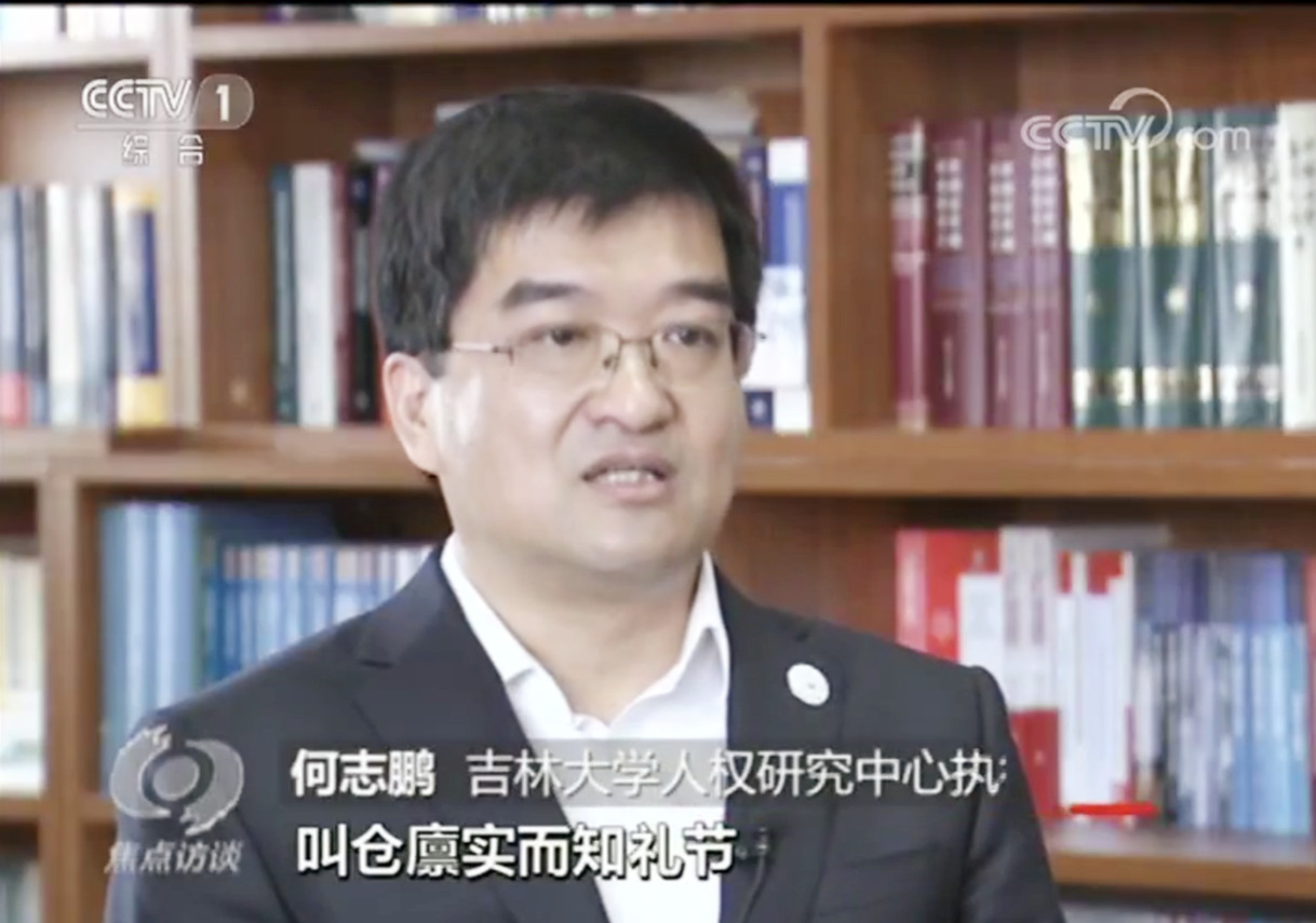 2019年10月9日,中央电视台“焦点访谈”播出题为“人民幸福生活就是最大的人权”白皮书专题节目。节目对何志鹏教授进行了采访,何教授对白皮书进行了详细解读。