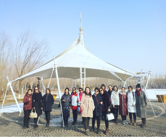 一路欢声笑语,列车来到了第二站——小花园。冬雪消融,空气中已然传递着春天的气息。在古典的凉亭前合影留念,也将我们的笑容留在这个春天。