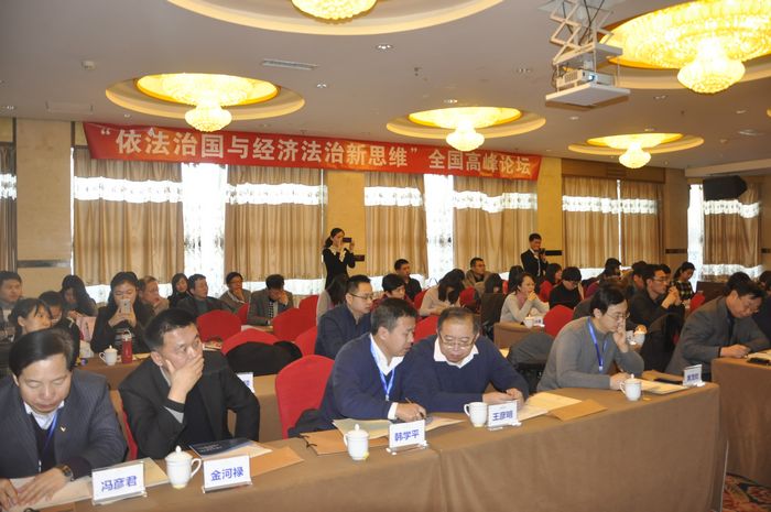 和吉林省法学会经济法学研究会共同主办的“依法治国与经济法治新思维”全国高峰论坛,在长春名人酒店一楼会议厅隆重举行。吉林省法学会党组书记、常务副会长姜德志同志在省法学会秘书长何海源同志的陪同下到会并发表重要讲话。论坛开幕式由快猫