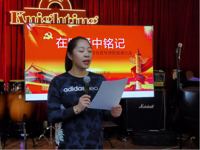 张俊峰副书记代表周春国书记和何志鹏院长参加了本次活动并致辞,还声情并茂地朗诵了一首诗歌。除了现场参加活动,我们还通过在群里实时传送视频、照片的方式与未能参加此次活动的老师们进行了分享,让每个人都能感受到诗歌中的美好情感。妇委会还将继续组织别开生面、丰富多彩的建党百年纪念活动,带领大家在形式多样的党史学习教育中更加深入地了解党的百年历程,更加珍惜今天的幸福生活,以百倍的热情投入到自己的工作中去。
