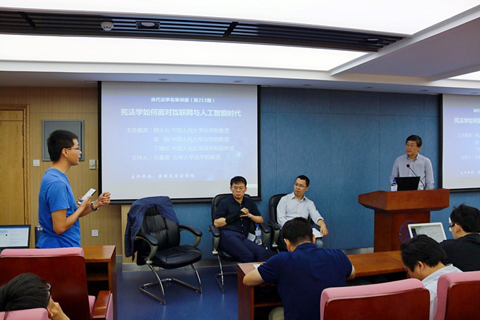 就宪法如何应对人工智能带来的宪法学问题,丁晓东副教授指出,宪法介入人工智能不是可不可能的问题,而是应不应该的问题。宪法能从根本上解决人工智能的法律难题。张翔教授也认为,人工智能所带来的问题不是某个部门法单独能解决的问题,它需要一个整合的视角,而宪法就是解决这些问题最合适的角度,从更加规范而非纯理论的角度解决问题,也只有宪法才能够担起如此的使命。韩大元教授表示,技术的使命永远是为人服务。如果技术主宰了人的生活,对人而言将是灾难。为此要用法治限制,具体表现为:技术发展的理念要符合宪法精神;宪法是保障学术自由的,但学术自由也是有限制的,需要正确的价值立场,受到宪法约束;政府在科学技术面前应当保持中立立场,运用宪法解释防范因技术发展引发公权力对基本权利的侵犯,不能在拥抱技术的同时将人的尊严边缘化。