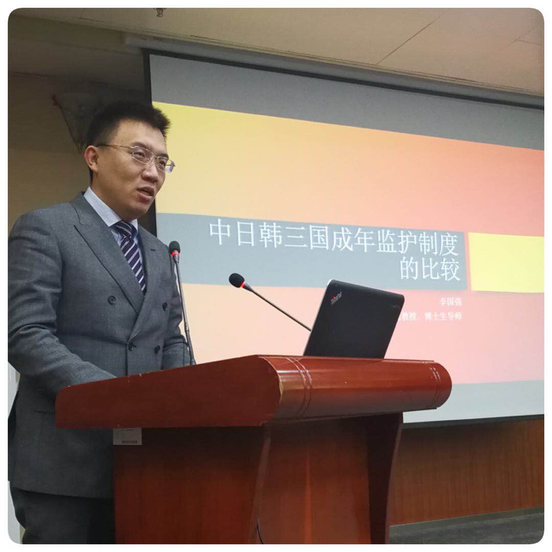 教授、博士生导师、吉林省法学会民法学研究会副秘书长李国强教授就中日韩三国成年监护制度的比较考察问题作出发言与汇报。我国社会已经由老龄化逐渐步入超老龄化阶段,在老年人判断能力逐步丧失的情况下,财产管理如何实现是老龄化社会应当解决的重要难题。李国强教授在发言中指出,应当明晰成年监护制度的核心功能和价值属性在于实现财产管理而非养老问题。通过对比东亚中日韩三国成年监护制度之间的不同规定,李国强教授明确了我国成年监护制度在保护的启动、监护人范围、监护人职责等方面存在的问题。只有将制度改进的措施建立在明晰存在的本质问题的前提基础上,才能够切实探求制度修缮的合理进路。