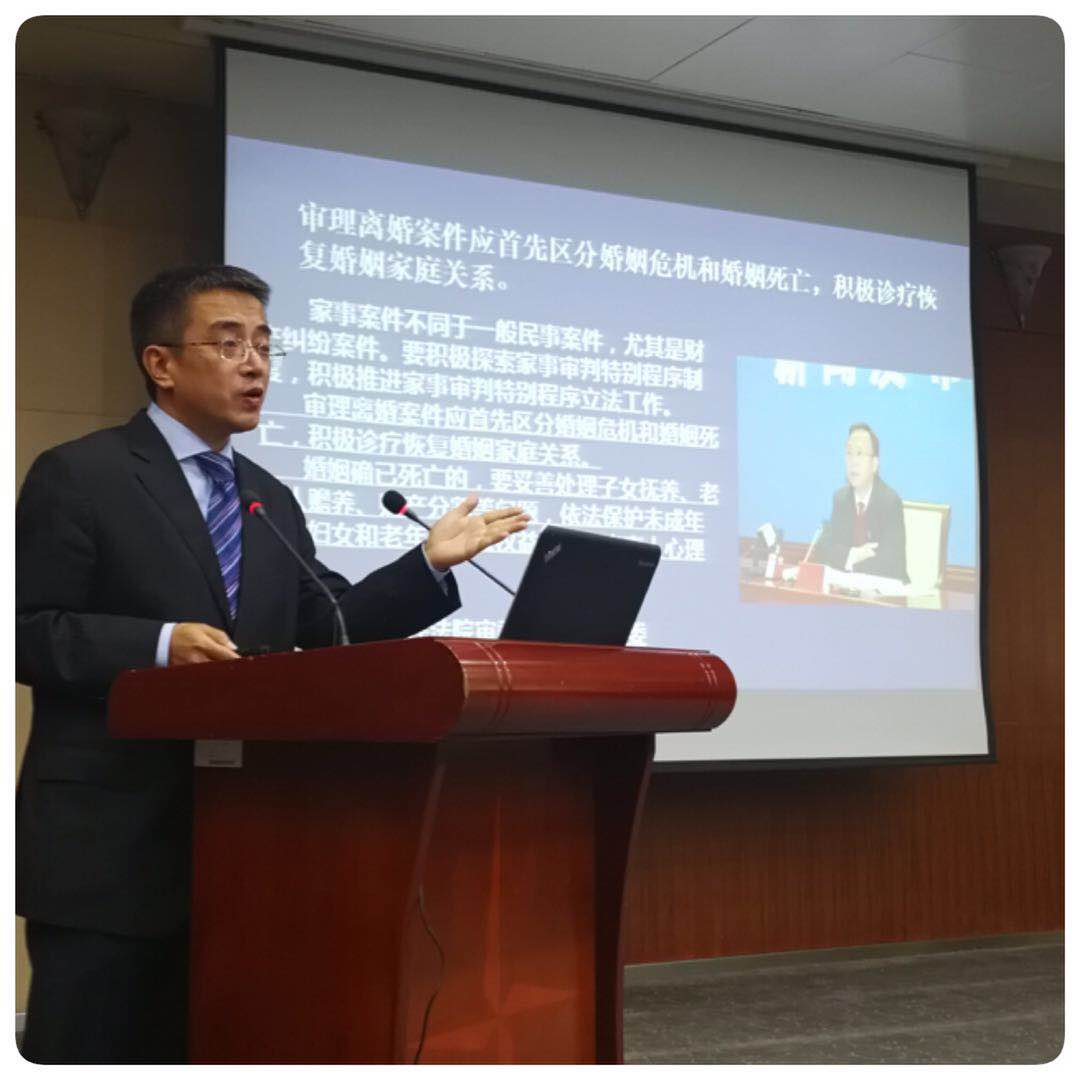 吉林省高级人民法院民四庭李世秀副庭长代表吉林省高级人民法院吕洪民副院长就家事审判制度改革的现状以及未来改革发展的方向问题作出发言和汇报。近几年,吉林省人民法院在家事审判制度方面不断探索,在专门家事法官的选任、专门家事法庭的设立以及全案调解的推进方面都取得了较好的改革成果。在未来的家事法庭发展方向方面,法院将从家事调查的开展、财产申报制度的设置、部门联动以及社区调解员的聘任等方面深化改革,有效推动家事审判制度的发展和创新。