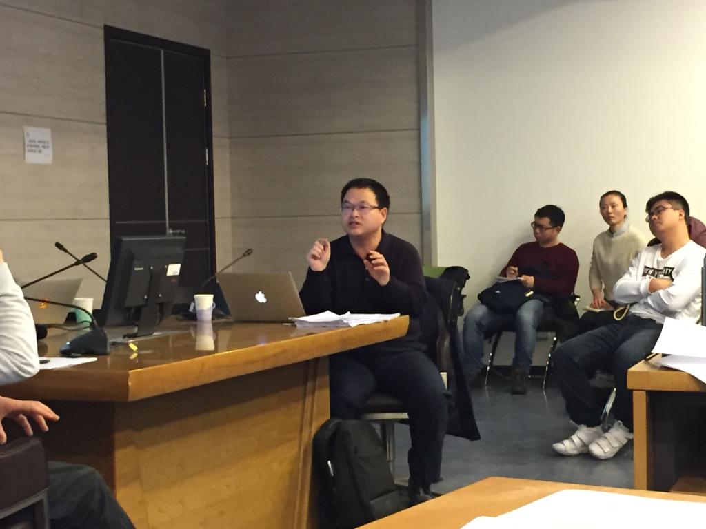 有过一段短暂的工作经历。说凌皞是男神,不仅仅是颜值很高,更是因为其渊博的学识和深厚的学养。我觉得凌皞总体来说是属于分析法学阵营的。按照拥军老师的说法,分析法学与社科法学相比,其一大特点就是门槛很高,一般人不能够信口开河。那么基于我对凌皞著作和论文的阅读,他对英美分析法学的脉络非常的了解。在分析法学阵营内,凌皞的研究又非常有特色,他专注儒家美德伦理学的研究,试图在分析的意义上把传统儒家思想与现代学术相对接。这是一项非常有意义的工作,也具有极大的挑战性。所以凌皞不是一般的男神,而是学术男神。另外据朱振老师说,凌皞的演讲也富有魅力,思路清晰,口才了得。今天凌皞给我们带来的演讲的主题是“死亡、身后损害与死者的名誉权“。这次我们的两位评议老师分别是来自民法学专业的孙良国老师和我们法理学的朱振老师。除此之外,我们还有拥军老师和学宾老师也前来参加我们的这次活动。接下来有请凌皞做主题发言。