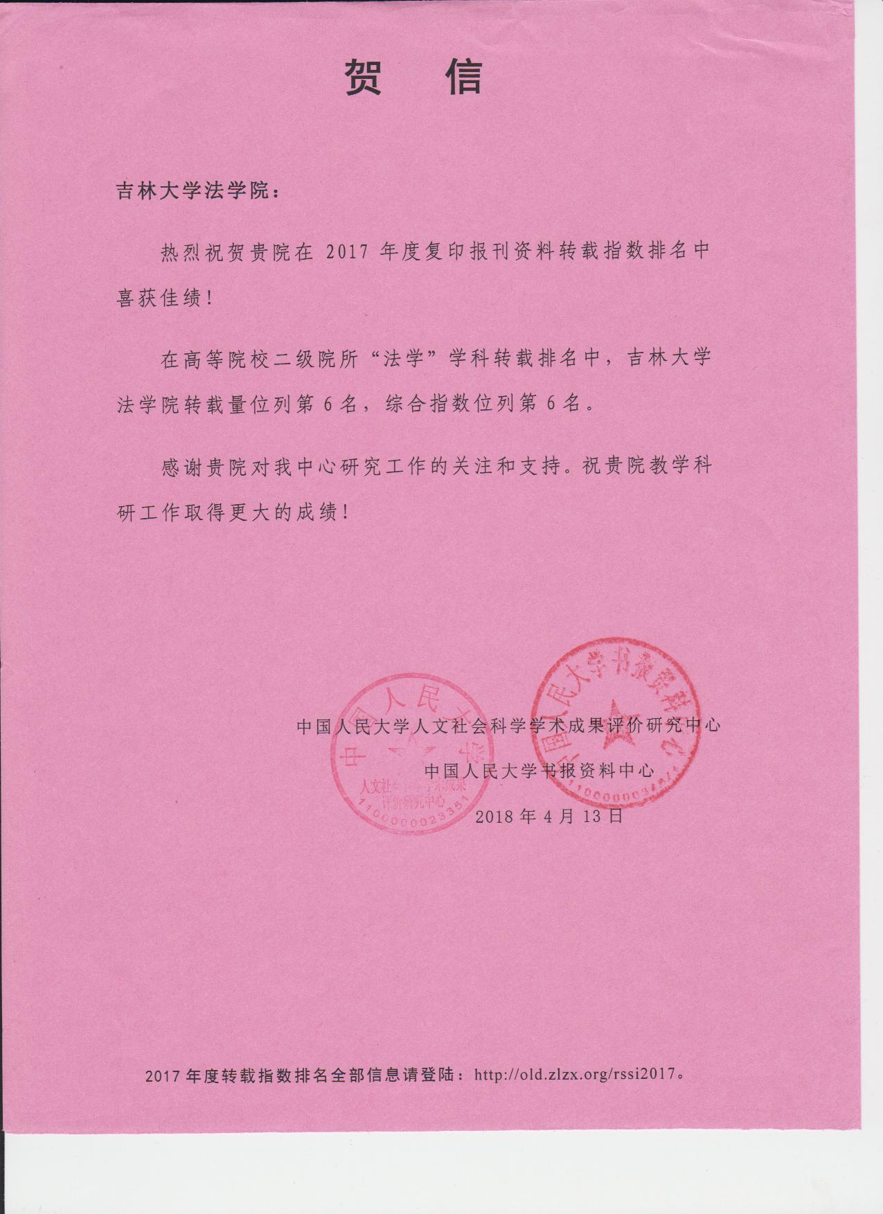 在2017年度复印报刊资料转载指数排名中喜获佳绩!在高等院校二级院所“法学”学科转载排名中,快猫