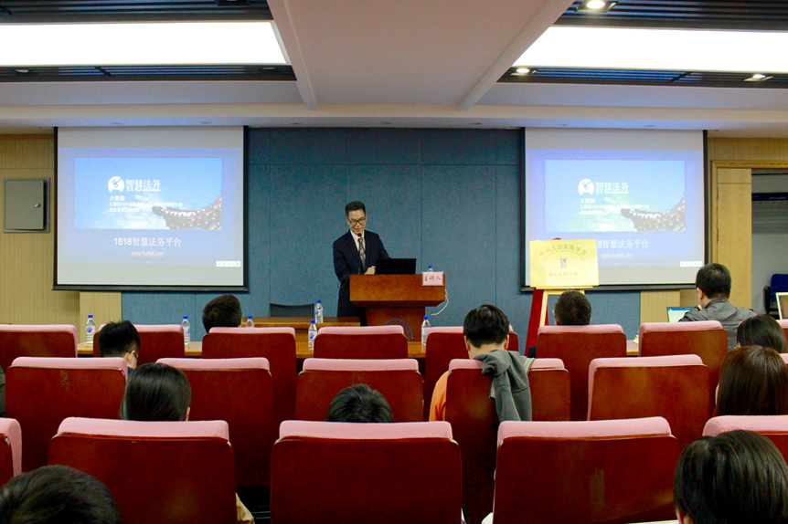 钱弘道教授首先与在座的各位师生分享了自己求学时代的梦想与追求,并结合自己的人生经历激励师生应当怀揣满腔热血与情怀做好学术判断、谋划学术人生。钱教授在讲座中表示,近年来法学实证研究方法的发展、量化法治的提出等,体现了法学研究基本方向的转变,代表了中国法治研究进入第三个阶段。在此背景之下,其分享了自己启动智慧法务探索与实践的宝贵经验,并全面介绍了由其建立的“1818智慧法务平台”的运行模式。钱教授幽默的语言表述、生动的实例分享赢得了阵阵欢笑与掌声。